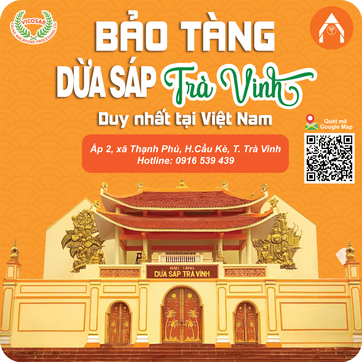 Vicosap là đơn vị đầu tiên tại Việt Nam chế biến chuyên sâu các sản phẩm từ trái dừa sáp đặc sản Trà Vinh. Hành trình thay áo mới cho dừa sáp Cầu Kè (Trà Vinh - Việt Nam), Vicosap quyết tâm quảng bá đến du khách gần xa về đặc sản dừa sáp, cũng như muốn mang đến cho thực khách một sản phẩm không chỉ đẹp về mẫu mã mà còn nâng cao chất lượng sản phẩm bằng tình yêu quê hương của người con vùng đất Trà Vinh này.