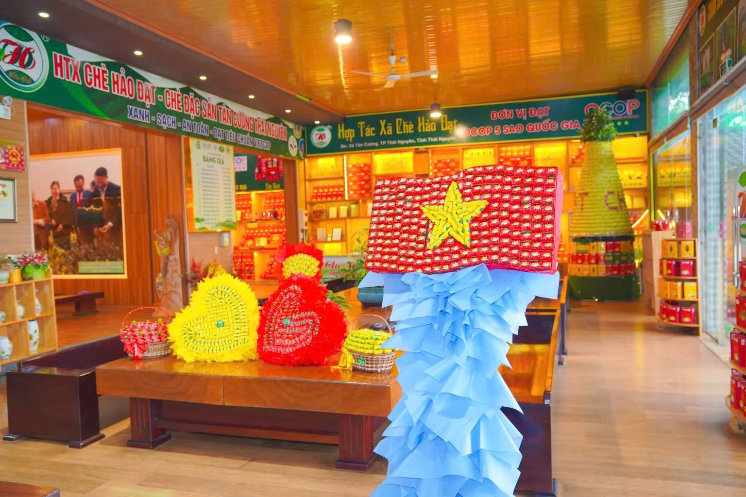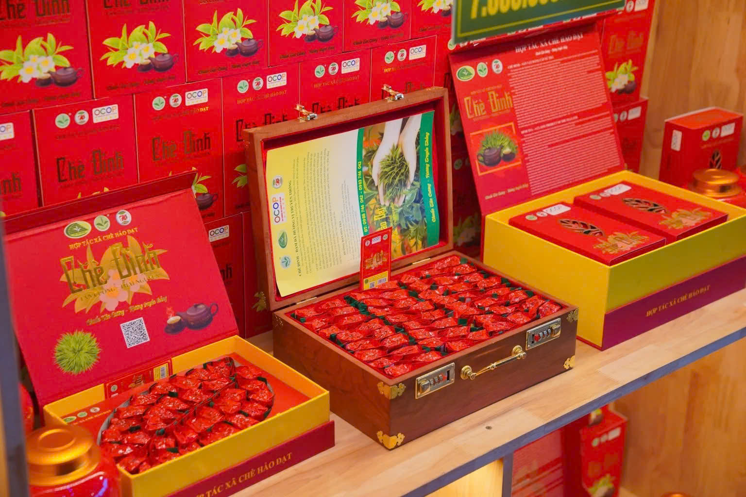 Mới đây, tại không gian thưởng trà và trưng bày sản phẩm, ngoài việc giới thiệu các sản phẩm trà của cơ sở, Hợp tác xã còn bố trí không gian trưng bày và bán các sản phẩm OCOP của tỉnh Thái Nguyên để du khách có thể mua về làm quà cho gia đình và bạn bè, góp phần quảng bá các sản vật của địa phương.